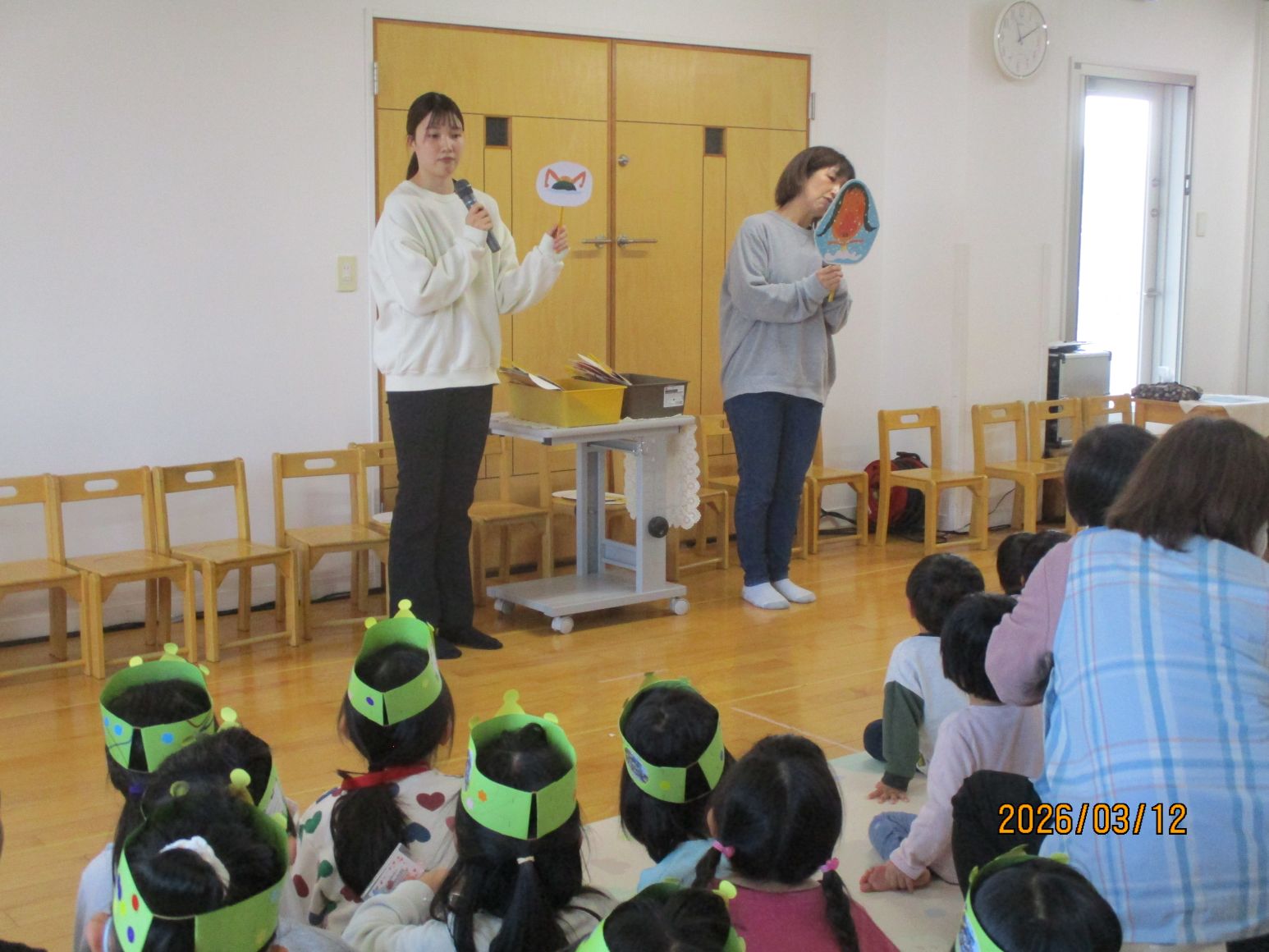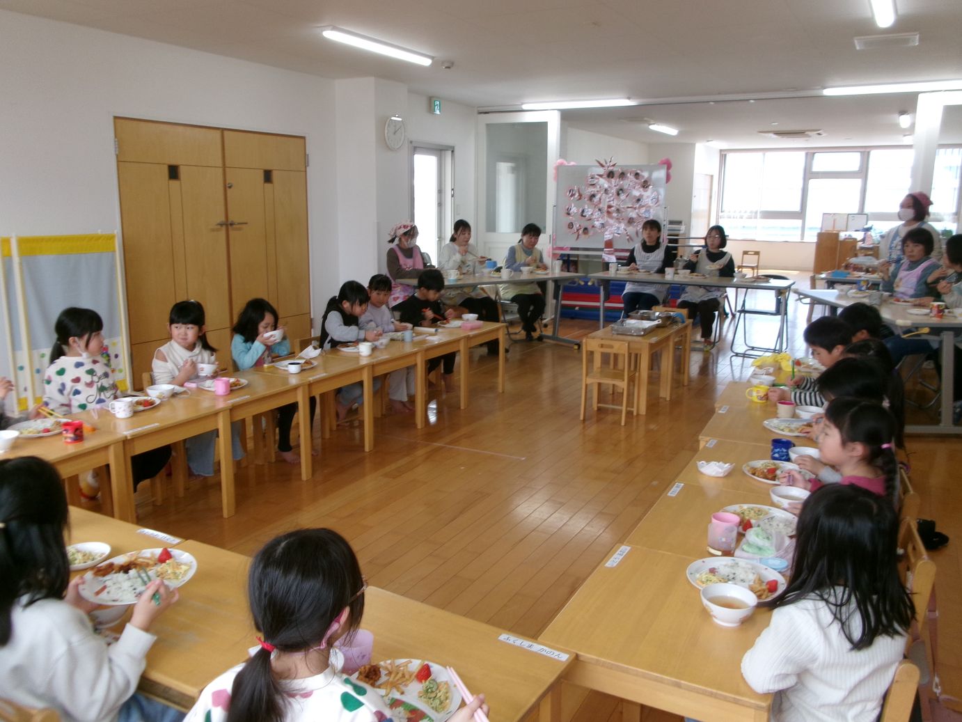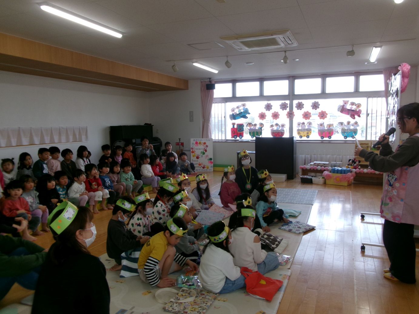 つばめぐみさんとのお別れ会を行いました。ホールに集まり各クラスから心のこもったプレゼント渡しや、先生からはひとりひとりへメッセージのプレゼント。給食の先生は大好きなリクエストメニューを作ってもらいました。4歳児が準備をして司会をしてくれました。優しいつばめぐみさんと、お別れする日が近くなるのでさみしいです。