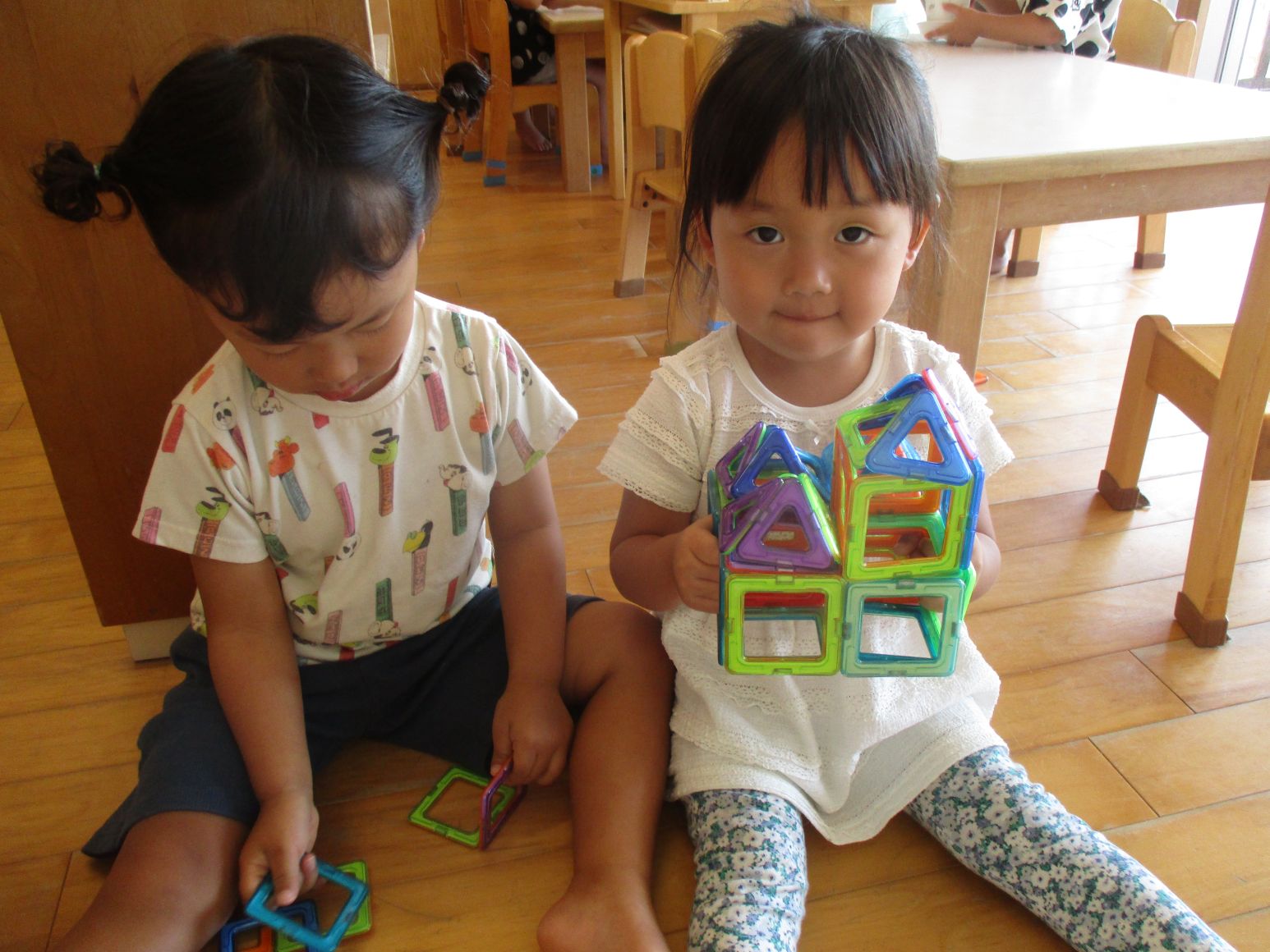 手先が器用になってきた2歳児さん。想像したものが作れるようになってきました。