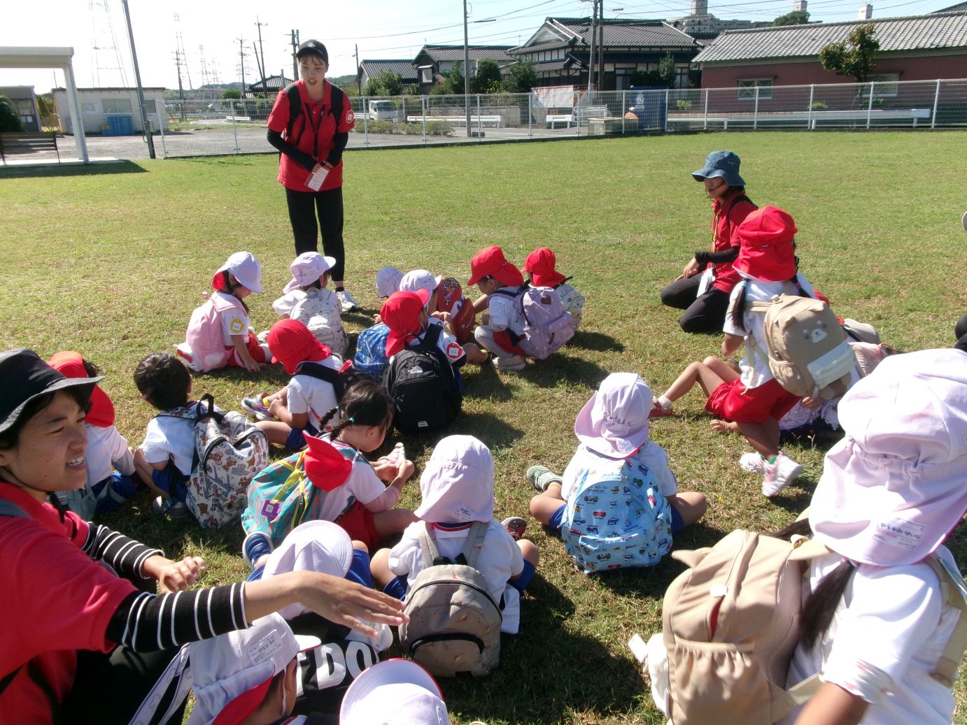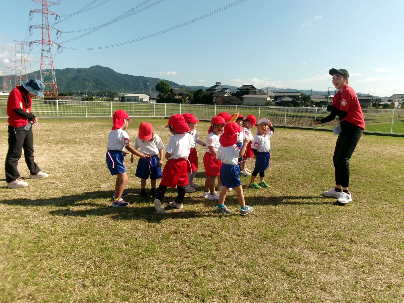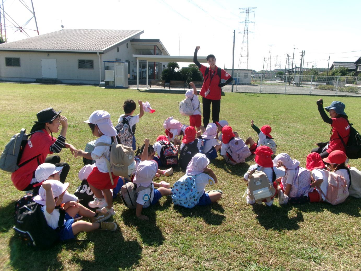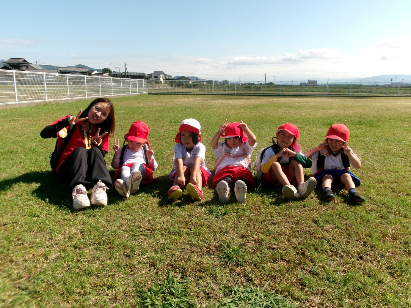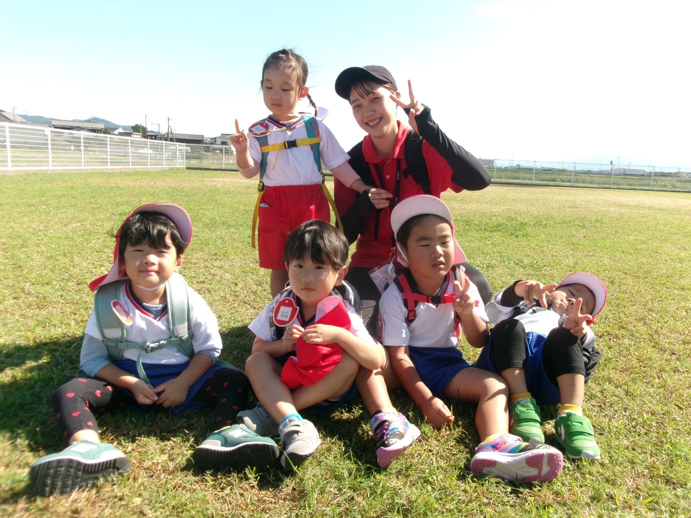 10月24日に3歳児があさひ公民館に遠足に行きました。あさひ公民館の芝生の広場はとても広くて気持ちの良い所でした。しっぽ取りや大繩で遊びました。お待ちかねのお弁当の時間はお弁当の蓋を開けると大喜びの表情♡「がんばるぞ~」「おお~!」と帰りも元気一杯の子ども達でした。