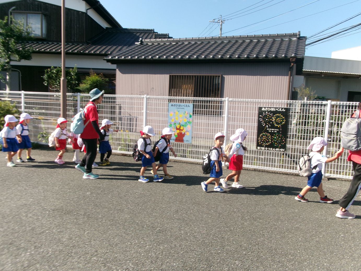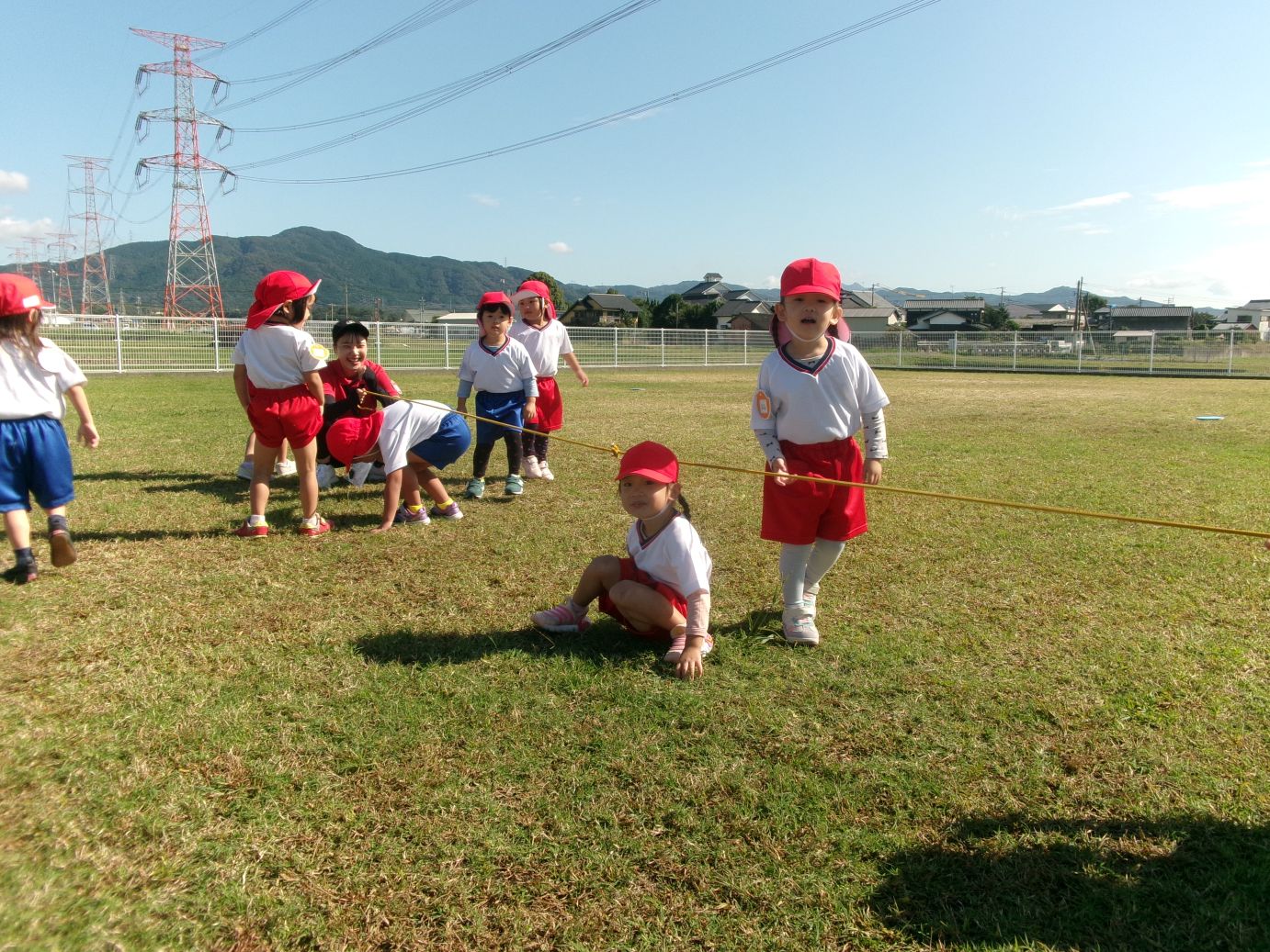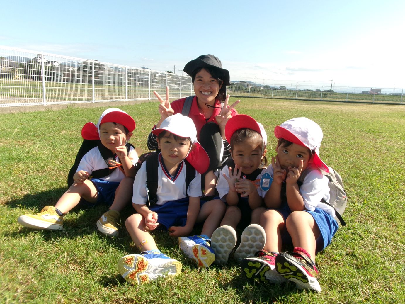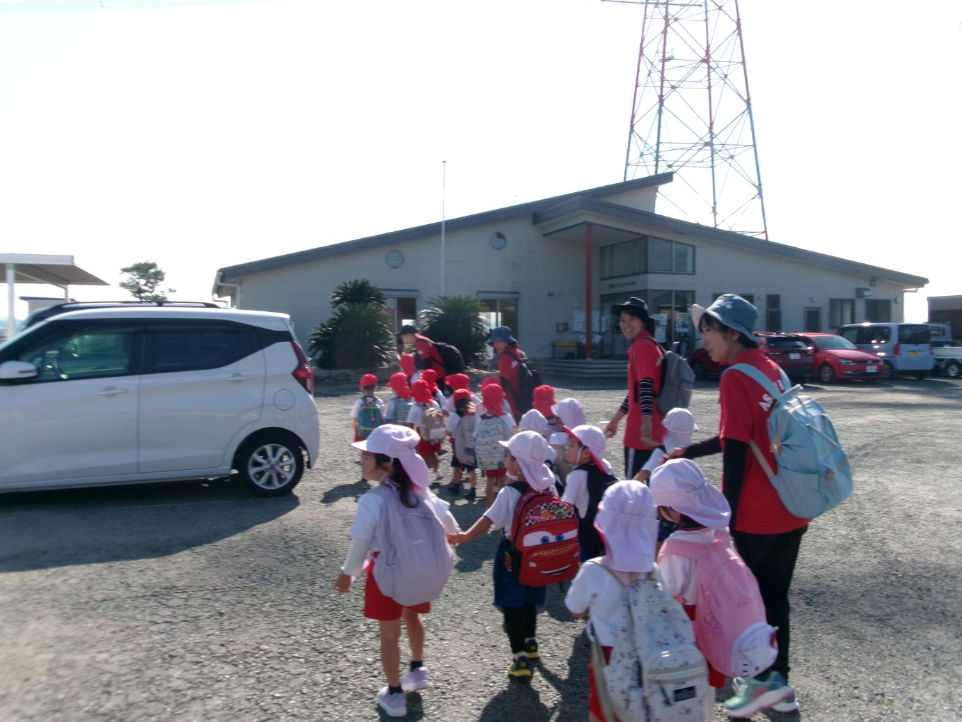 10月24日に3歳児があさひ公民館に遠足に行きました。あさひ公民館の芝生の広場はとても広くて気持ちの良い所でした。しっぽ取りや大繩で遊びました。お待ちかねのお弁当の時間はお弁当の蓋を開けると大喜びの表情♡「がんばるぞ~」「おお~!」と帰りも元気一杯の子ども達でした。