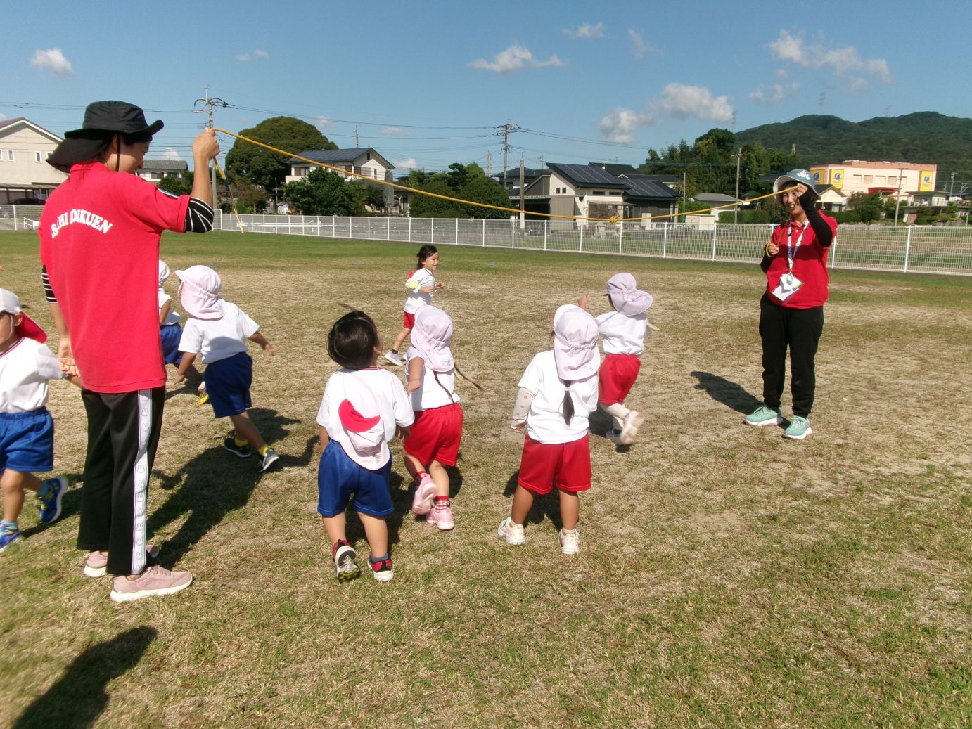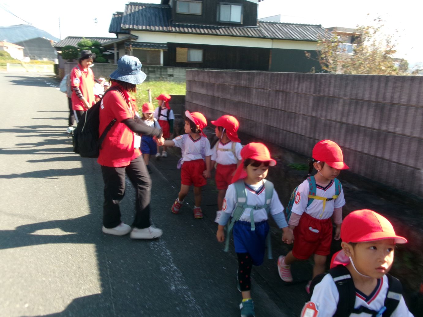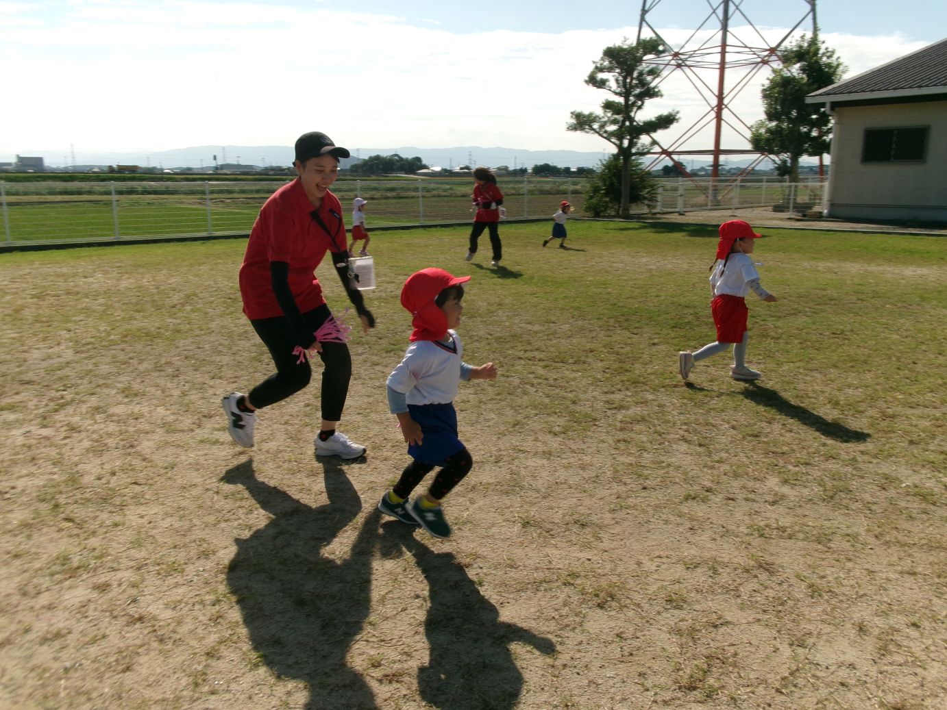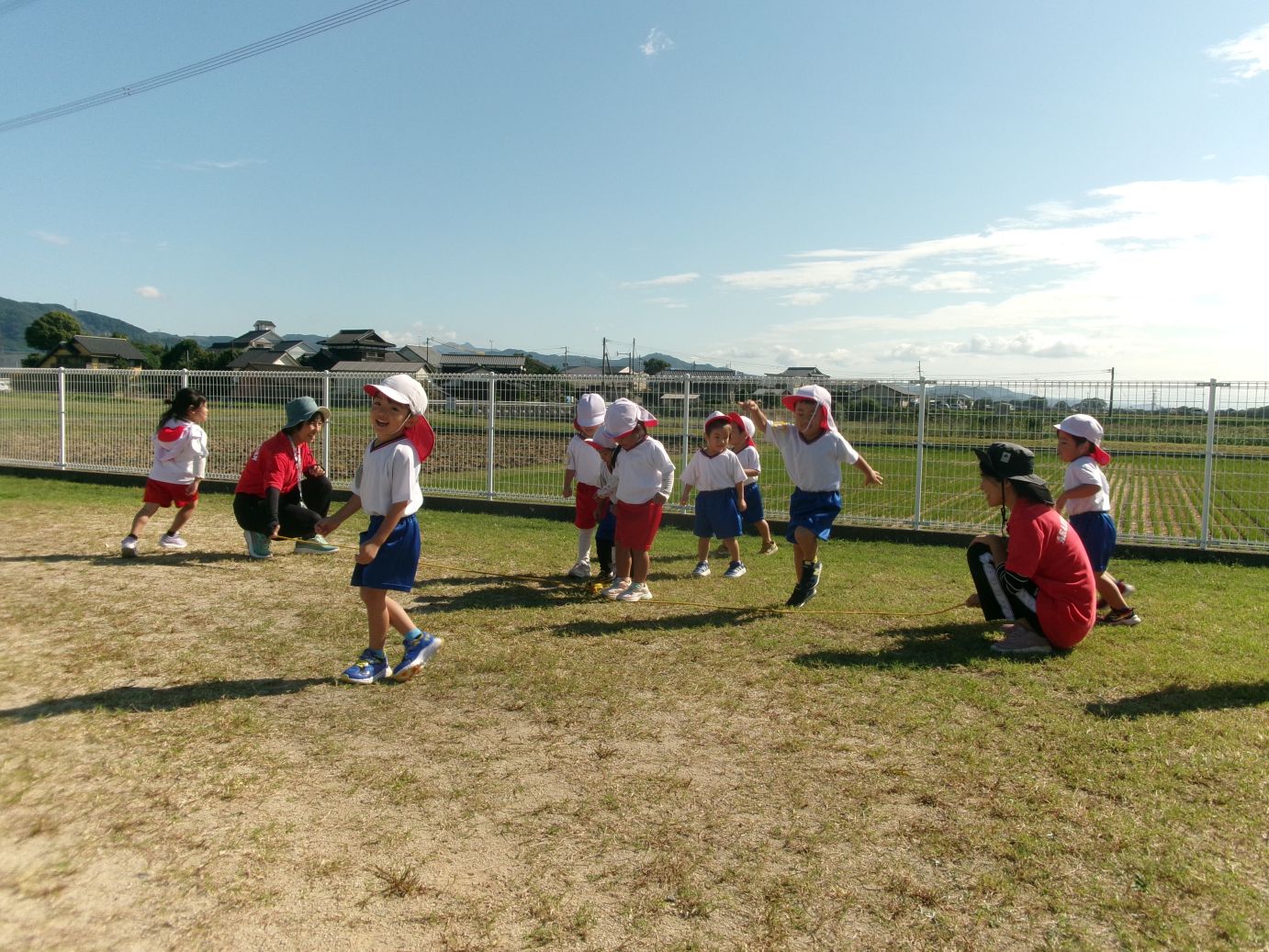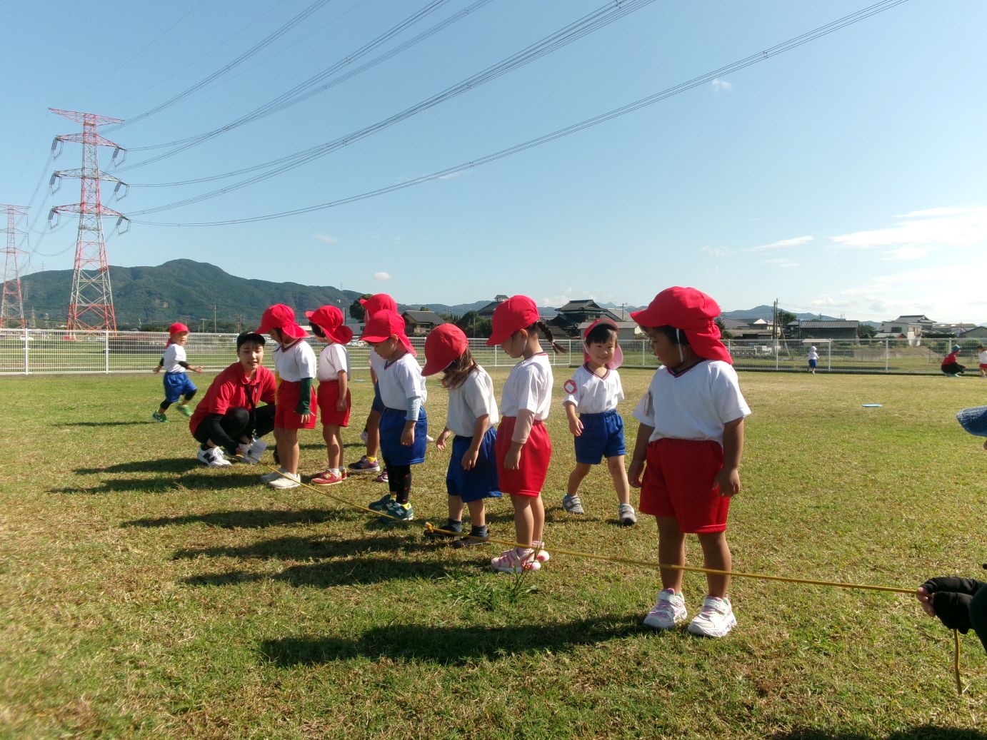 10月24日に3歳児があさひ公民館に遠足に行きました。あさひ公民館の芝生の広場はとても広くて気持ちの良い所でした。しっぽ取りや大繩で遊びました。お待ちかねのお弁当の時間はお弁当の蓋を開けると大喜びの表情♡「がんばるぞ~」「おお~!」と帰りも元気一杯の子ども達でした。