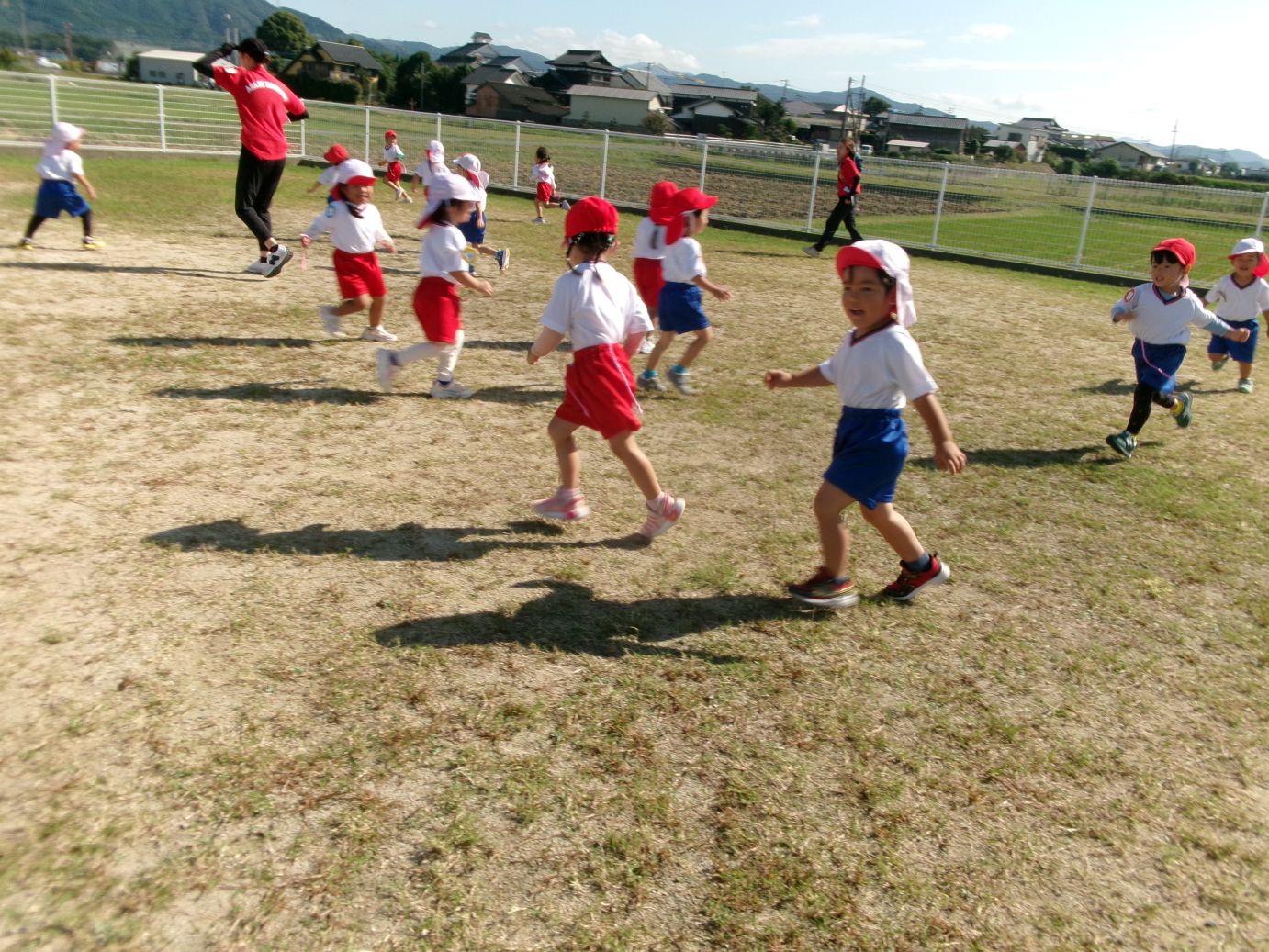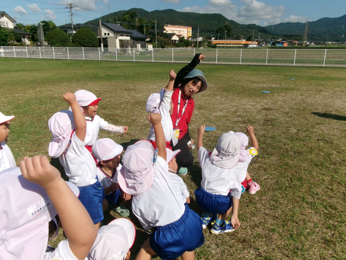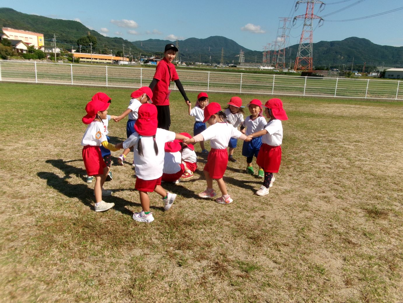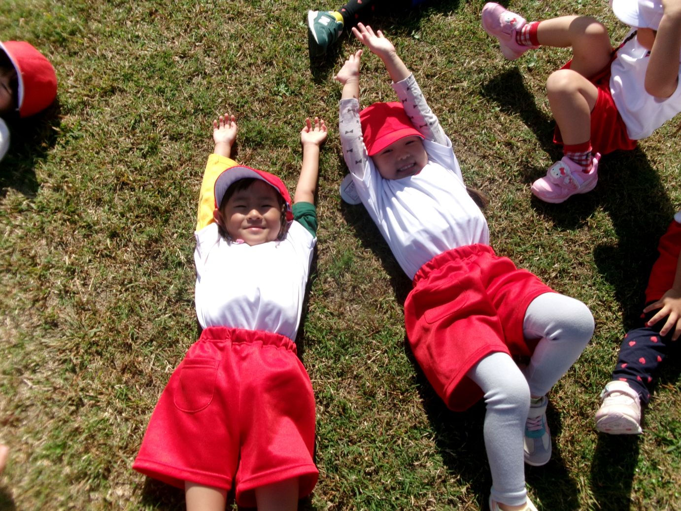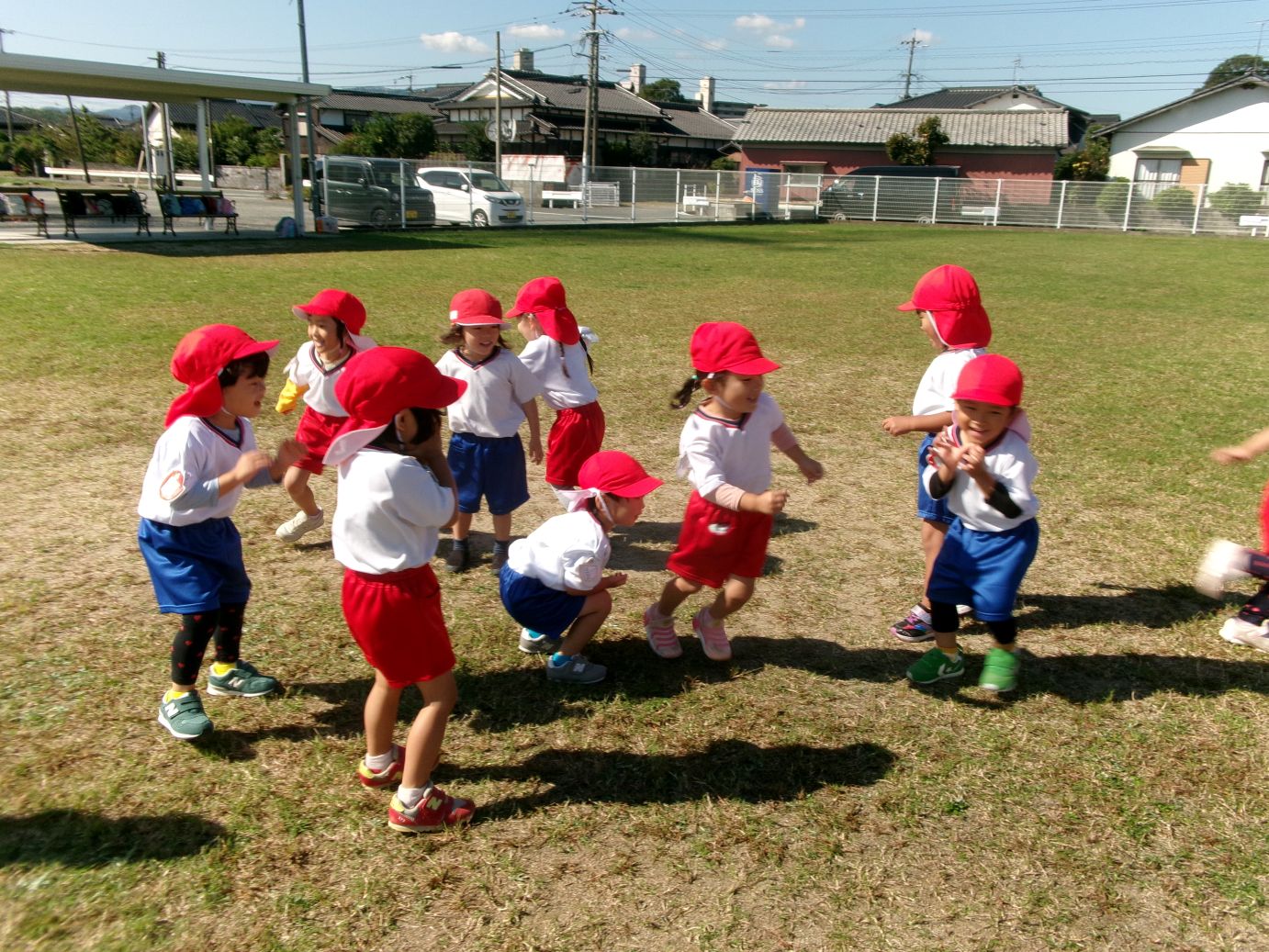 10月24日に3歳児があさひ公民館に遠足に行きました。あさひ公民館の芝生の広場はとても広くて気持ちの良い所でした。しっぽ取りや大繩で遊びました。お待ちかねのお弁当の時間はお弁当の蓋を開けると大喜びの表情♡「がんばるぞ~」「おお~!」と帰りも元気一杯の子ども達でした。