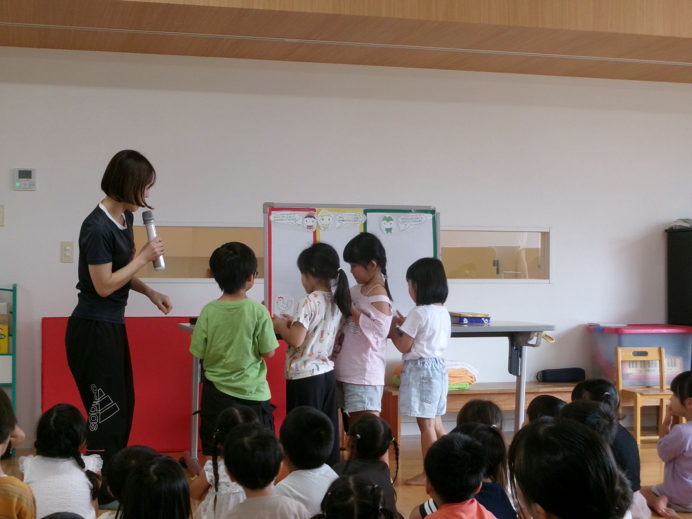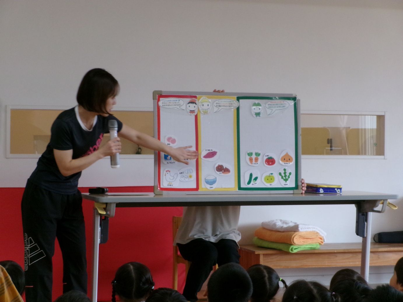 栄養士の先生から、三色食品群の話を聞きました。毎日の食事をしっかり食べることが元気で丈夫な体を作ることを知りました。